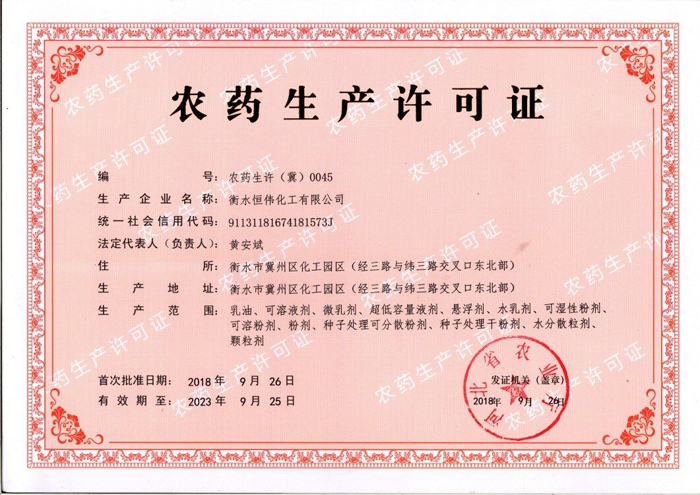 農(nóng)藥生產(chǎn)許可證